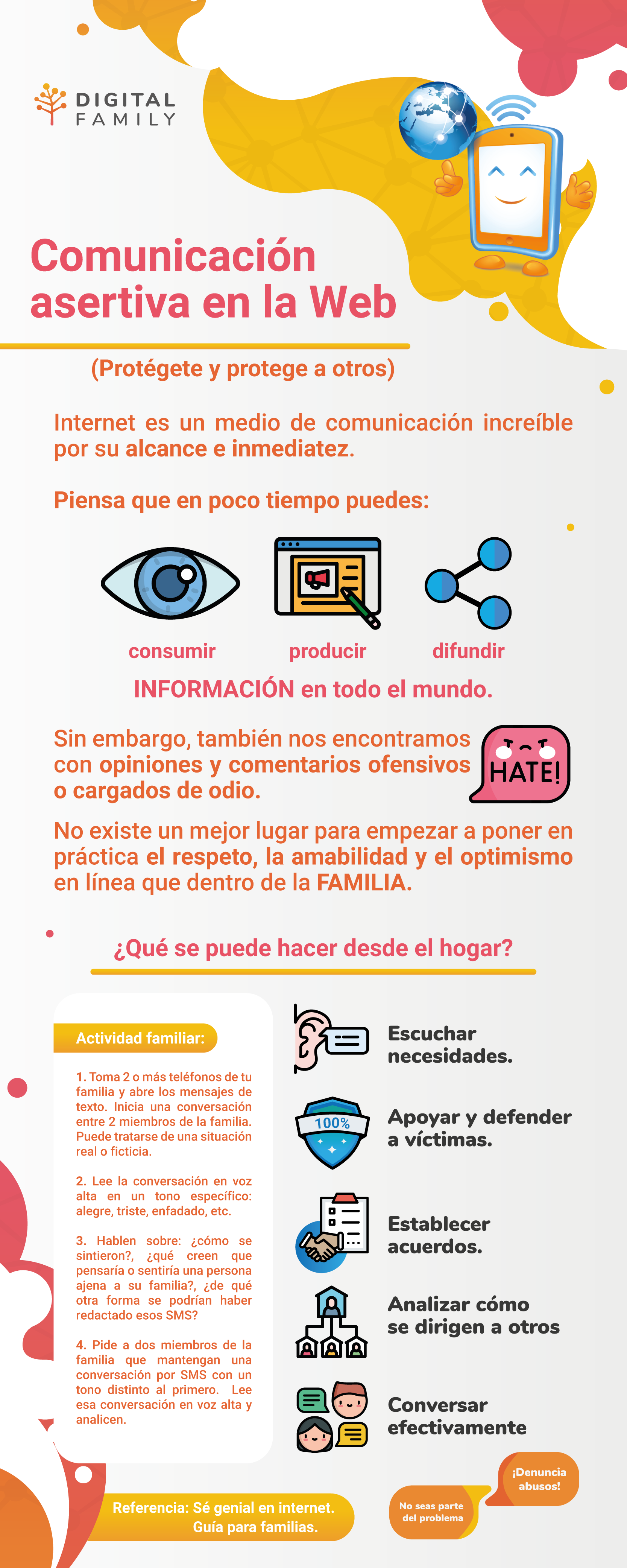 No existe un mejor lugar para empezar a poner en práctica el respeto, la amabilidad y el optimismo en línea en la FAMILIA. ¿Qué se puede hacer desde el hogar?